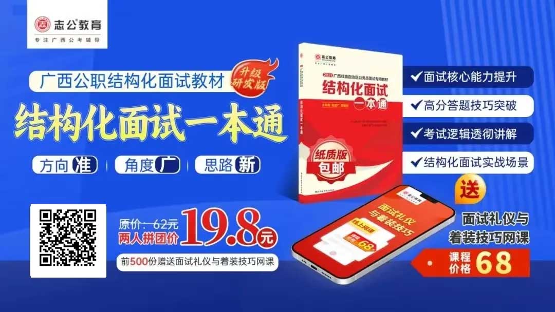 廣西區(qū)考面試準(zhǔn)備需緊扣本土特色,強(qiáng)化邏輯表達(dá)和實(shí)務(wù)能力,同時注重細(xì)節(jié)(如資格復(fù)審材料、禮儀)。建議從現(xiàn)在起每天練習(xí)2-3套題,持續(xù)積累廣西熱點(diǎn)案例,爭取面試高分!資料已經(jīng)為大家準(zhǔn)備好了,快去看看吧!