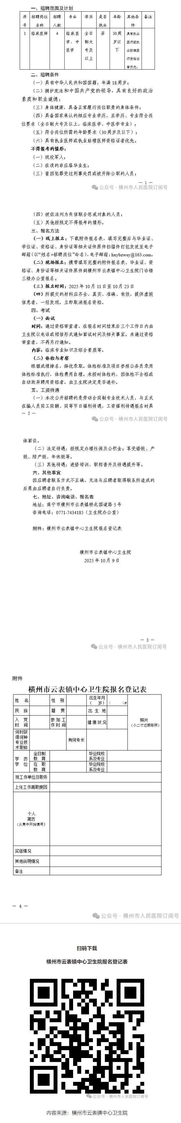 2025年橫州市云表鎮(zhèn)中心衛(wèi)生院公開招聘編外衛(wèi)生專業(yè)技術(shù)人員的公告