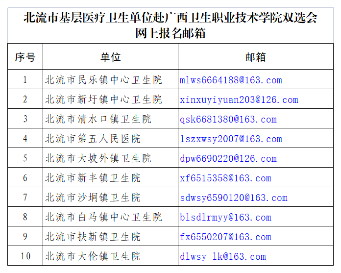 4.北流市基層醫(yī)療衛(wèi)生單位赴廣西衛(wèi)生職業(yè)技術(shù)學(xué)院雙選會網(wǎng)上報名郵箱