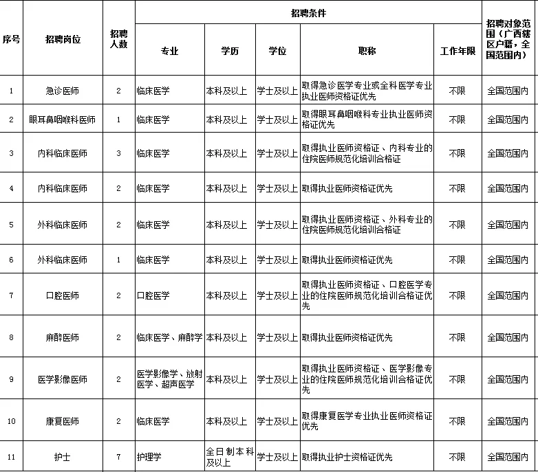 6.具備相應的學歷和學位,各專業(yè)技術崗位須取得相應的執(zhí)業(yè)準入資格或專業(yè)技術資格,且執(zhí)業(yè)范圍符合專業(yè)技術需要;